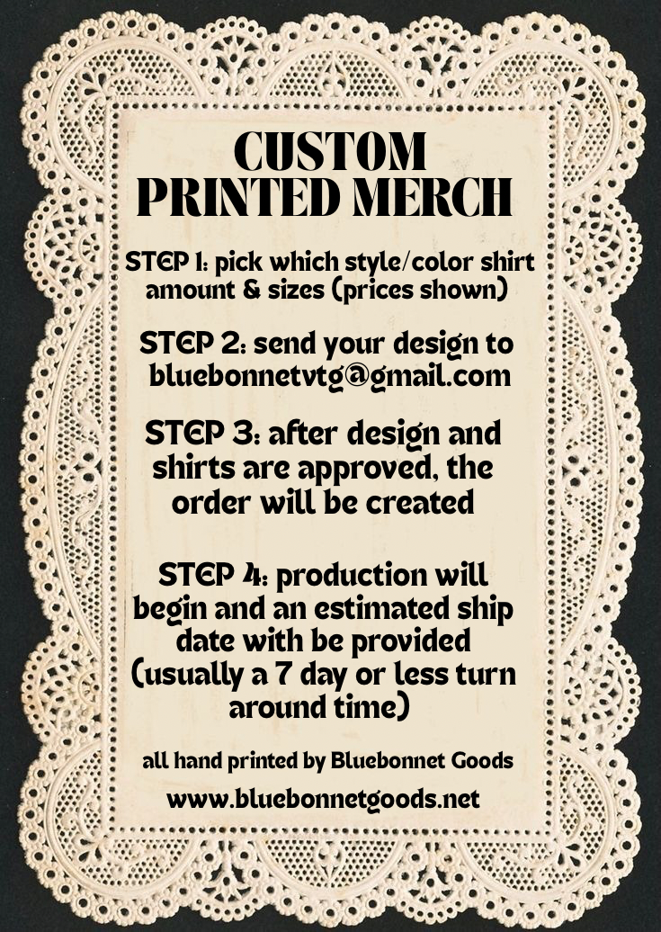 Want custom images printed on tanks or baby tees? I can make that happen whether it's a single shirt or you're looking for a bulk amount. Contact me with the contact form below!